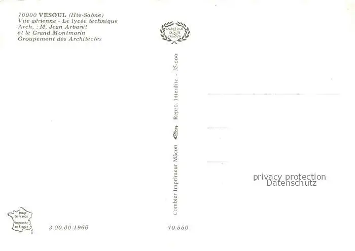 14020779 Vesoul 70 Haute Saone Vue aerienne Le lycee technique postalisch nicht gelaufen Erhaltung siehe scans [WerneD78]