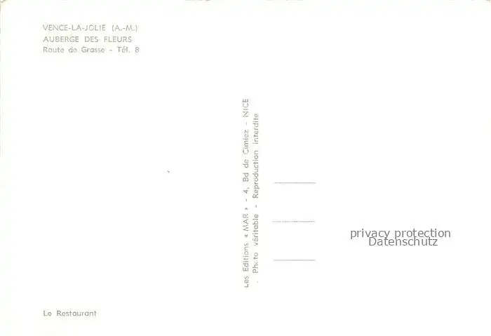 14022702 Vence-la-Jolie 06 Alpes-Maritimes Auberge des Fleurs postalisch nicht gelaufen Erhaltung siehe scans [WerneD78]