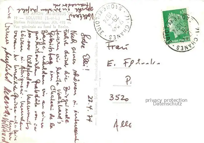 carte postale 14024120 Solutre-Pouilly MACON 71 Saone-et-Loire Station Praehistorique Vue generale au fond la Roche postalisch gelaufen Erhaltung siehe scans [WerneD78]