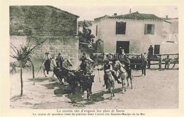 AK / Ansichtskarte 14024297 LES SAINTES-MARIES-DE-LA-MER 13 Bouches-du-Rhone Course de taureaux vient de pénétrer dans l'arène