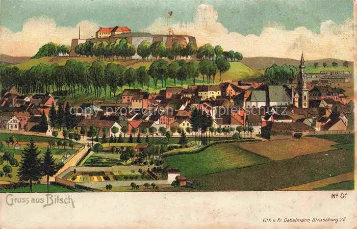 14027104 Bitsch Bitche 57 Moselle Lothringen Panorama Festung postalisch nicht gelaufen Erhaltung siehe scans [WerneD78]