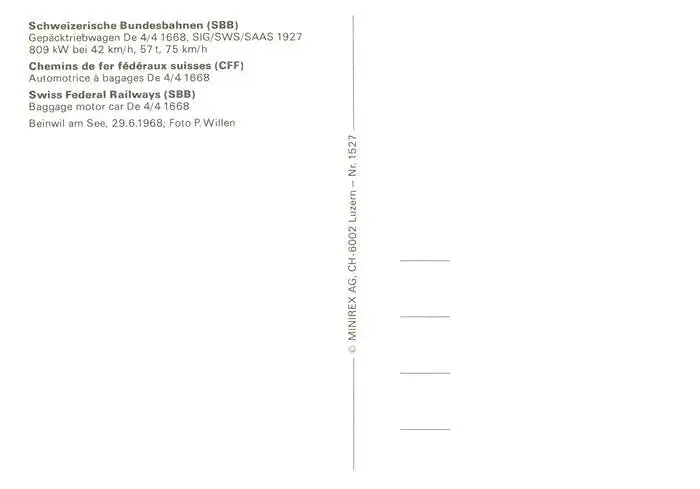 14027828 Eisenbahn Schweiz CH SBB Gepaecktriebwagen De 4/4 1668 SIG/SWS/SAAS postalisch nicht gelaufen Erhaltung siehe scans [IrynaD87]