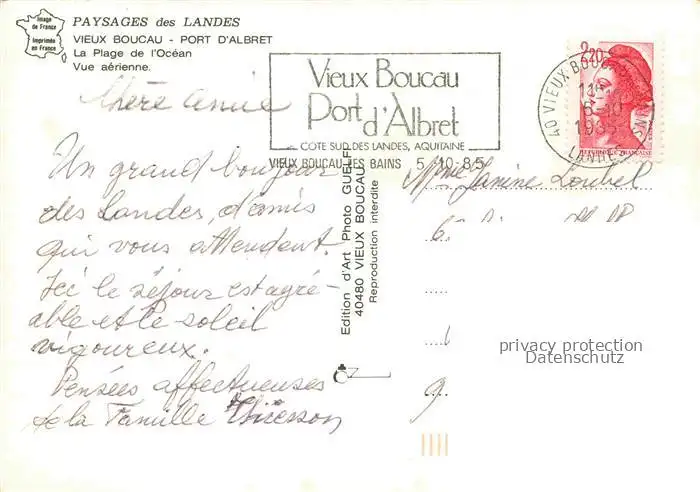 carte postale 14028455 Vieux-Boucau-les-Bains 40 Landes Port d'Albert Plage de l'Océan vue aérienne postalisch gelaufen Erhaltung siehe scans [FriedD77]