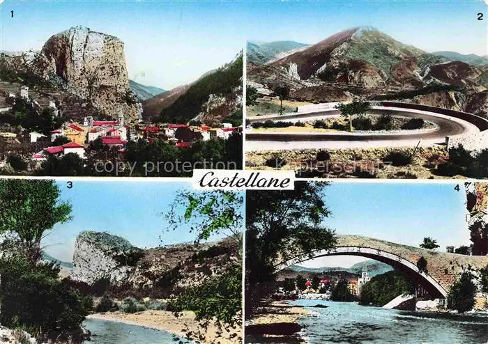 AK / Ansichtskarte 14029590 Castellane 04 Alpes-de-Haute-Provence Vue générale Lacets du col des Lecques Roc Le Verdon Pont Napoléon