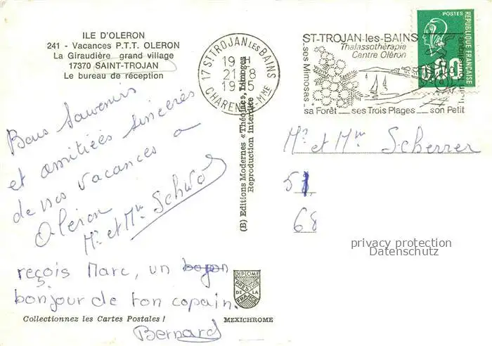 carte postale 14031302 Ile d Oleron 17 Charente-Maritime Vacances P.T.T. Oleron La Giraudière Grand village Bureau de réception postalisch gelaufen Erhaltung siehe scans [FriedD77]
