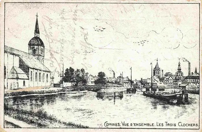 carte postale 14031628 Comines LILLE 59 Nord Vue d'Ensemble Les Trois Clochers postalisch gelaufen Feldpostamt (Stempel) Erhaltung siehe scans [WerneD78]