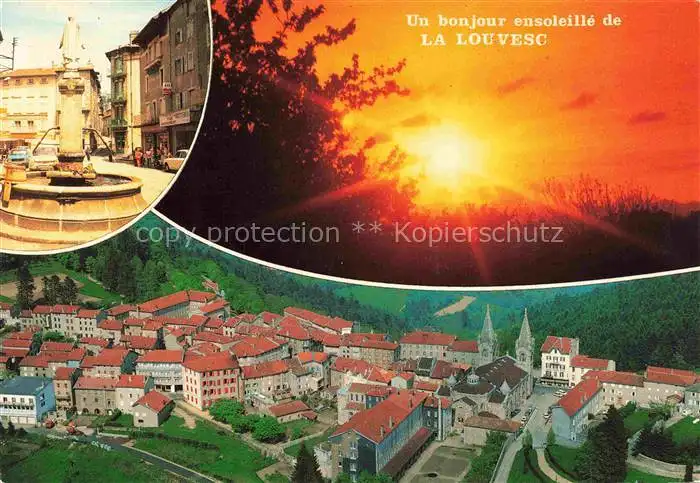 carte postale 14031732 La Louvesc 07 Ardeche Un bonjour ensoleillé Fontaine vue aérienne postalisch gelaufen Erhaltung siehe scans [FriedD77]