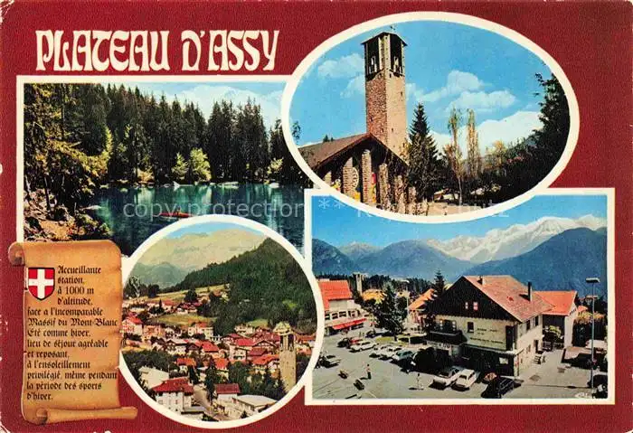 carte postale 14032458 Plateau d Assy Panorama Parie am See Hotel Restaurant Kirche postalisch gelaufen Erhaltung siehe scans [FriedD77]