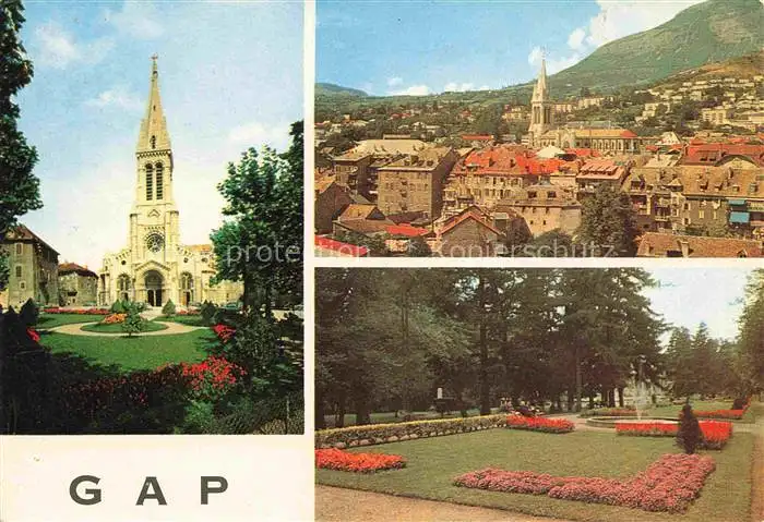 carte postale 14033375 Gap 05 Hautes-Alpes Cathédrale vue générale Jardin public La Pépinière postalisch gelaufen Erhaltung siehe scans [FriedD77]