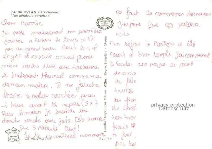 14033831 Evian-les-Bains 74 Haute-Savoie Vue générale aérienne postalisch nicht gelaufen Fliegeraufnahme Erhaltung siehe scans [FriedD77]