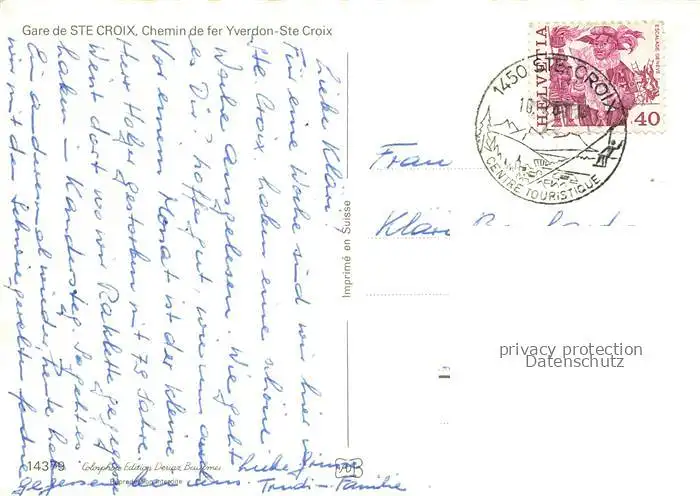 alte Postkarte 14035882 Ste-Croix Sainte-Croix VD Chemin de fer Yverdon Ste Croix postalisch gelaufen Erhaltung siehe scans [WerneD78]