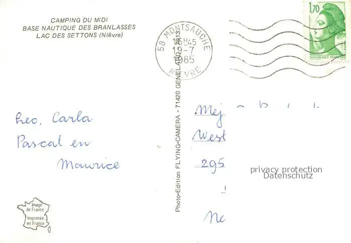 carte postale 14038169 Lac des Settons 35 Camping du Midi Base Nautique des Branlasses Vue aerienne postalisch gelaufen Erhaltung siehe scans [WerneD78]