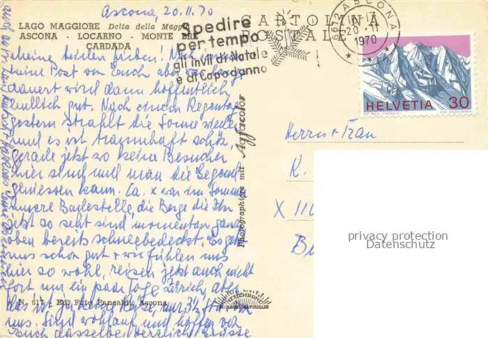 alte Postkarte 14039468 Ascona Lago Maggiore TI Panorama Ascona Locarno Monte Bre Cardada postalisch gelaufen Fliegeraufnahme Erhaltung siehe scans [FriedD77]