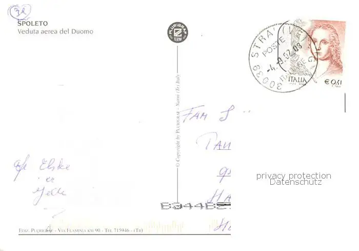 73796400 Spoleto_Umbria_IT Veduta aerea del Duomo postalisch gelaufen 2002 Erhaltung siehe scans [WerneD78] [WernPID7 ]