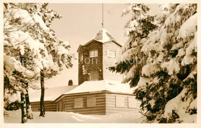73797013 Meuselbach-Schwarzmuehle Meuselbacher Kuppe im Thueringer Wald Turmgaststaette im Winter Meuselbach-Schwarzmuehle postalisch nicht gelaufen 1969 Erhaltung siehe scans [FriedD77] [Frierer ]