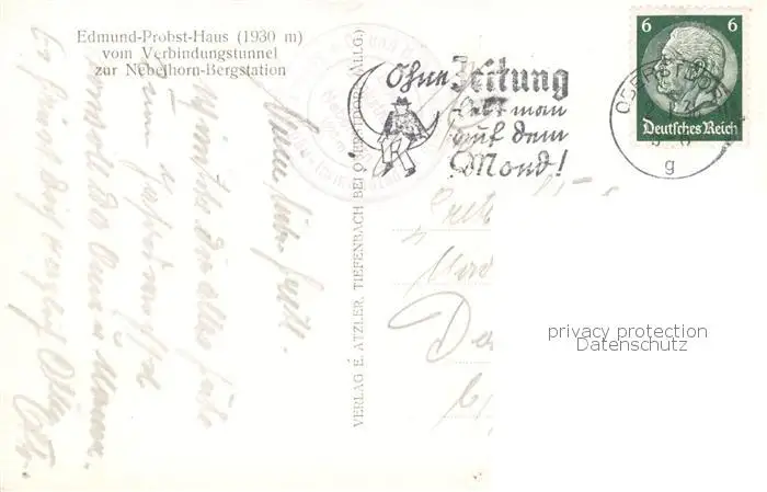 73801428 Oberstdorf Edmund Probst Haus vom Verbindungstunnel zur Nebelhorn Bergstation Oberstdorf postalisch gelaufen 1938 Erhaltung siehe scans [WerneD78] [WernPID7 ]