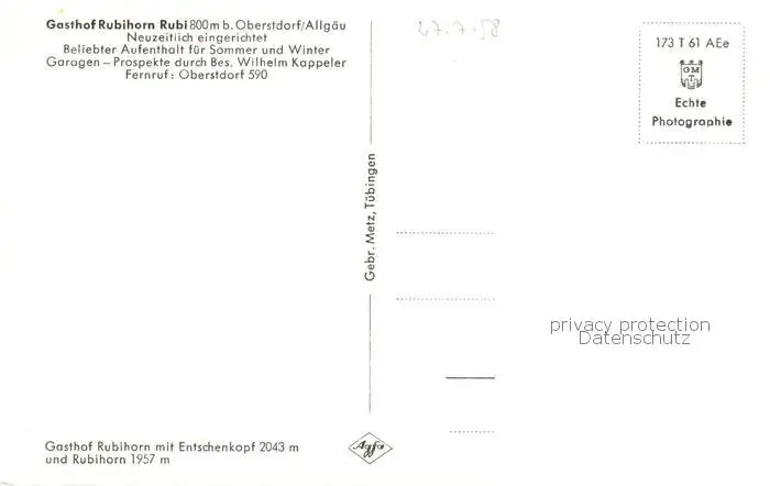 73801445 Rubi_Oberstdorf Gasthof Rubihorn Rubi_Oberstdorf postalisch nicht gelaufen 1958 Erhaltung siehe scans [WerneD78] [WernPID7 ]