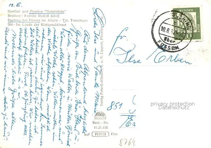 73801920 Buching Gasthof Pension Geiselstein Buching postalisch gelaufen 1962 Erhaltung siehe scans [WerneD78] [WernPID7 ]