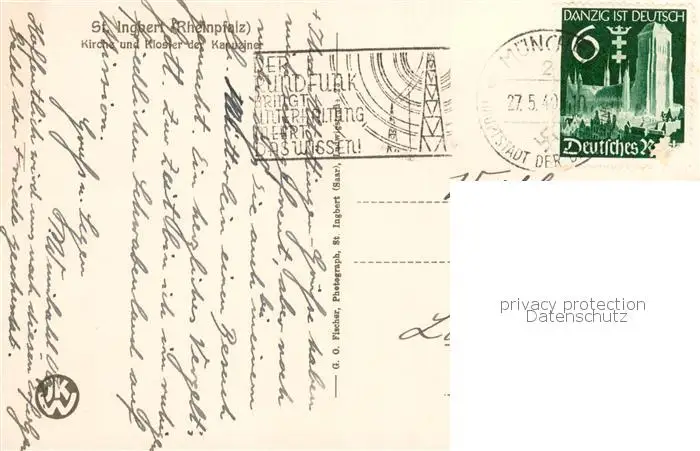 73803906 St_Ingbert Kirche und Kloster der Kapuziner St_Ingbert postalisch gelaufen 1940 Erhaltung siehe scans [WerneD78] [WernPID7 ]