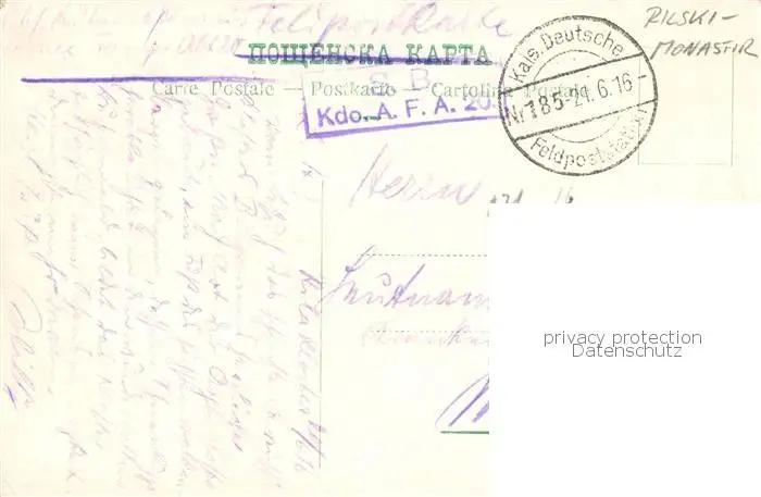 73804228 Rilski-Monastir_Rila_Rilo_BG Teilansicht postalisch gelaufen 1921 Feldpoststation (Stempel) Erhaltung siehe scans [FriedD77] Feldpoststation (Stempel)[Frierer ]