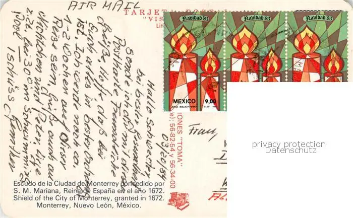 73804905 Monterrey Shield of the City of Monterrey Monterrey postalisch gelaufen 1984 Erhaltung siehe scans [FriedD77] [Frierer ]