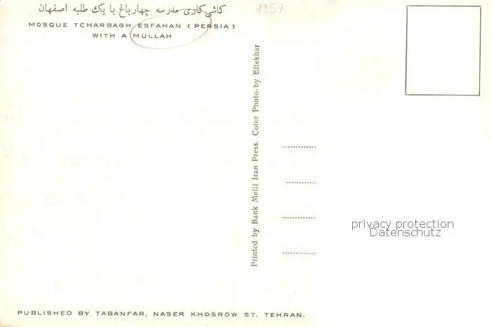73805146 Esfahan_Iran Mosque Tcharbagh with a Mullah postalisch nicht gelaufen 1957 Erhaltung siehe scans [FriedD77] [Frierer ]