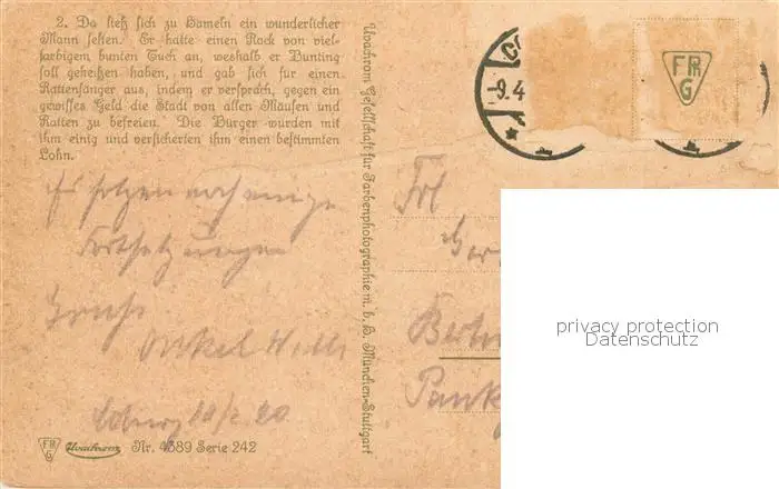 73807673 Hameln_Weser Brueder Grimms Rattenfaenger von Hameln Hameln Weser postalisch nicht gelaufen 1921-1965 Erhaltung siehe scans [WerneD78] [WernPID7 ]