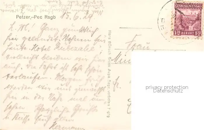73809000 Petzer_Riesengebirge_CZ Teilansicht postalisch gelaufen 1929 Erhaltung siehe scans [FriedD77] [Frierer ]
