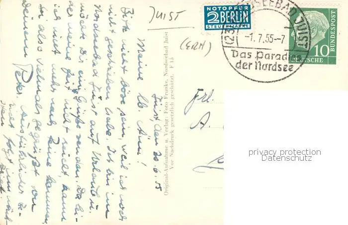 73810865 Juist_Nordseebad Strandpartie Juist_Nordseebad postalisch gelaufen 1955 Erhaltung siehe scans [WerneD78] [WernPID7 ]