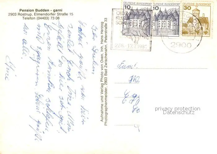73813956 Rostrup Pension Budden garni Rostrup postalisch gelaufen 1981 Erhaltung siehe scans [WerneD78] [WernPID7 ]