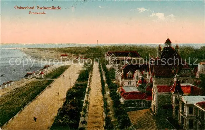 73818035 Swinemuende_Swinoujscie Promenade Strand Swinemuende Swinoujscie postalisch gelaufen 1920 Erhaltung siehe scans [FriedD77] [Frierer ]