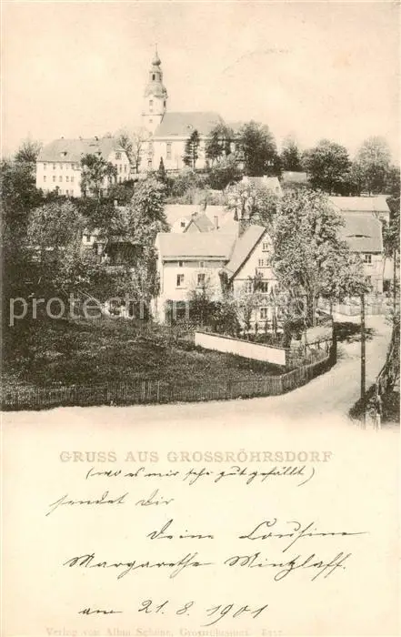 73821706 Grossroehrsdorf_Sachsen Teilansicht mit Kirche Grossroehrsdorf Sachsen postalisch nicht gelaufen 1901 Erhaltung siehe scans [WerneD78] [WernPID7 ]