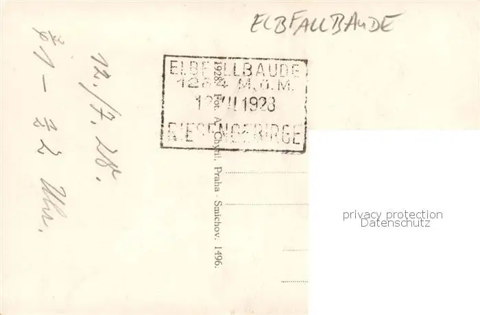 73823679 Elbfall_Elbefall_Riesengebirge_CZ mit Elbfallbaude postalisch gelaufen 1928 Erhaltung siehe scans [FriedD77] [Frierer ]