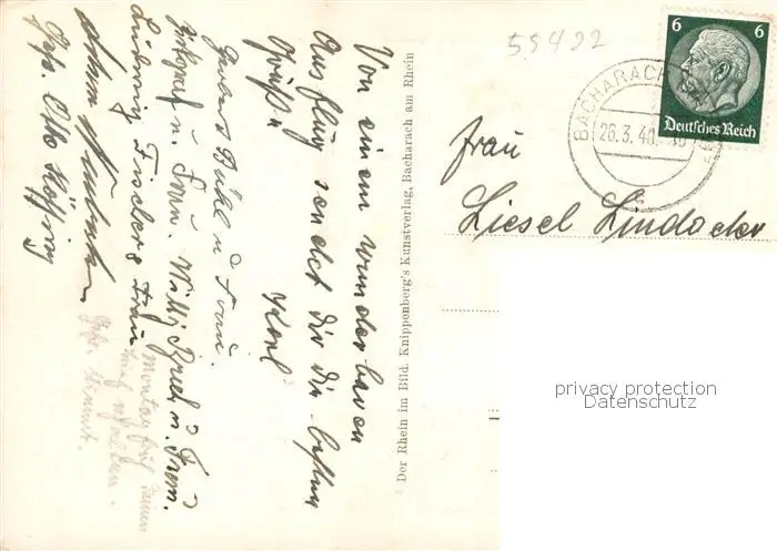 73828772 Steeg_Bacharach Ansicht vom Schoenblick Steeg Bacharach postalisch gelaufen 1940 Erhaltung siehe scans [WerneD78] [WernPID7 ]
