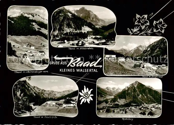 73829345 Baad-Mittelberg_Kleinwalsertal_AT mit Walmendinger Horn Widderstein Guentlispitze Zwoelferkopf Mittelberg postalisch nicht gelaufen 1921-1965 Erhaltung siehe scans [WerneD78] [WernPID7 ]