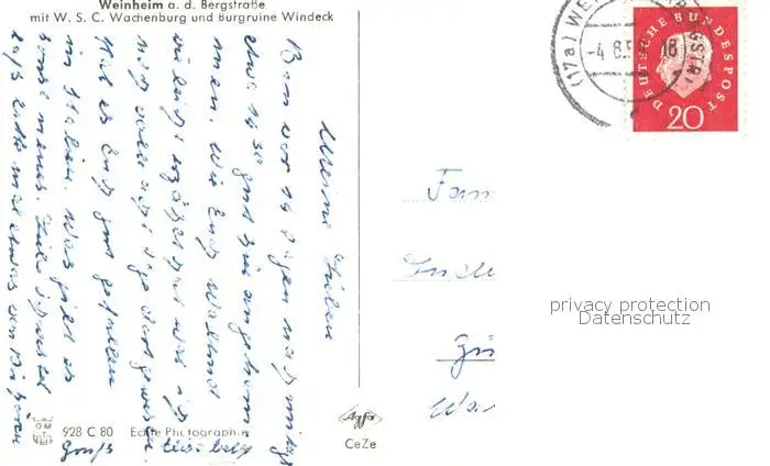 73832529 Weinheim_Bergstrasse mit WSC Wachenburg und Burgruine Windeck Weinheim_Bergstrasse postalisch gelaufen 1959 Erhaltung siehe scans [WerneD78] [WernPID7 ]