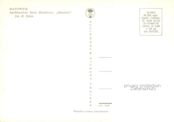 73834576 Katowice_PL Spoldzielczy Dom Handlowy Skarbek postalisch nicht gelaufen nach 1965 Erhaltung siehe scans [FriedD77] [Frierer ]