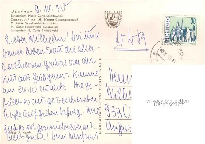 73836324 Jachymov_Sankt_Joachimsthal Sanatorium Marie Curie Sklodowske postalisch gelaufen nach 1965 Erhaltung siehe scans [WerneD78] [WernPID7 ]