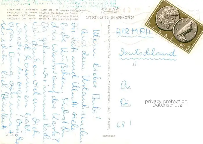 73844089 Epidaurus_Greece Amphitheater Nauplia Insel Bourtzi postalisch gelaufen nach 1965 Erhaltung siehe scans [FriedD77] [Frierer ]