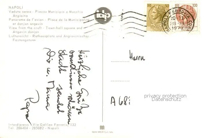 73847869 Napoli_Neapel_IT Veduta aerea Piazza Municipio e Maschio postalisch gelaufen 1979 Erhaltung siehe scans [WerneD78] [WernPID7 ]