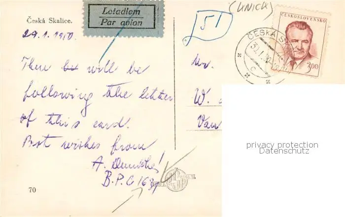 73851301 Ceska_Skalice_Boehmisch_Skalitz_CZ Ortsansicht postalisch gelaufen 1950 Erhaltung siehe scans [FriedD77] [Frierer ]
