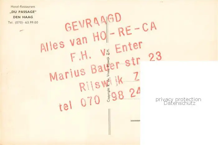 73852292 Den_Haag_La_Haye_NL Hotel Restaurant Du Passage postalisch nicht gelaufen nach 1965 Erhaltung siehe scans [FriedD77] [Frierer ]