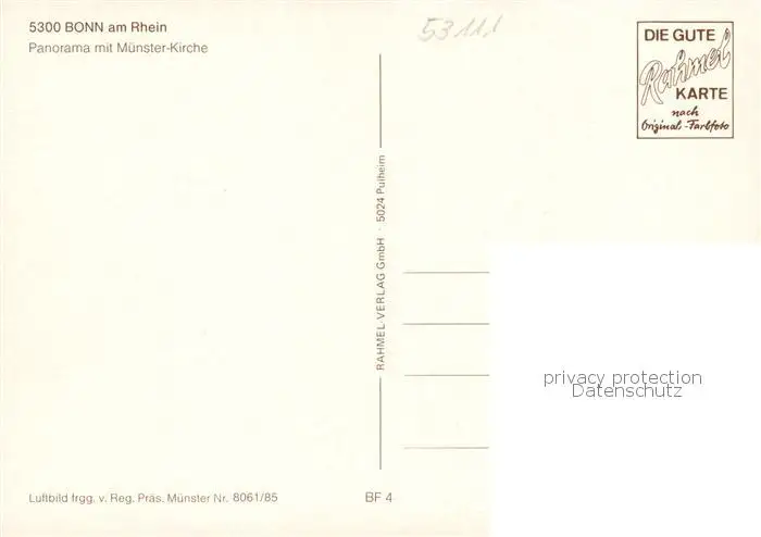 73855056 Bonn_Rhein Panorama mit Muenster-Kirche Bonn_Rhein postalisch nicht gelaufen nach 1965 Fliegeraufnahme Erhaltung siehe scans [FriedD77] Fliegeraufnahme[Frierer ]