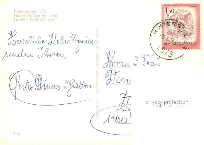 73856464 Hinterstoder_AT Huttererboeden mit dem Grossen Priel postalisch gelaufen 1975 Erhaltung siehe scans [WerneD78] [WernPID7 ]