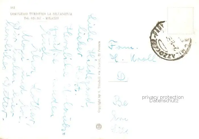 73856838 Milazzo_Sicilia_IT Complesso Turistoco la Silvanetta Bungalows Spiaggia postalisch gelaufen nach 1965 Erhaltung siehe scans [FriedD77] [Frierer ]