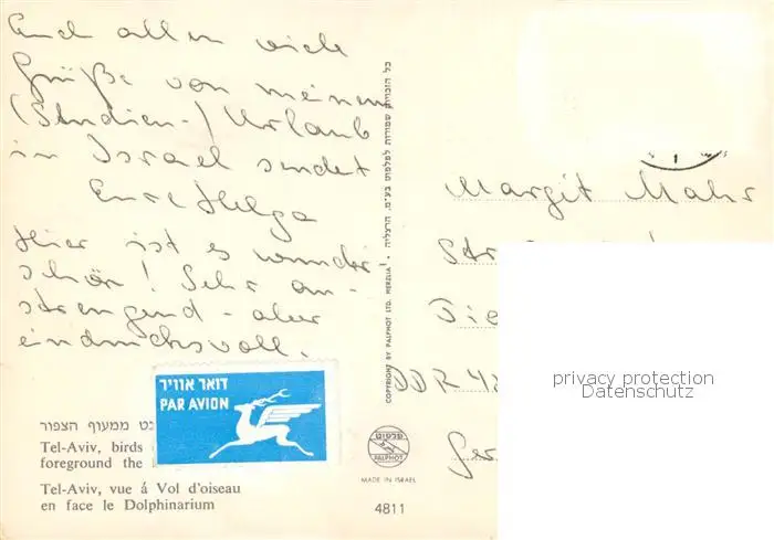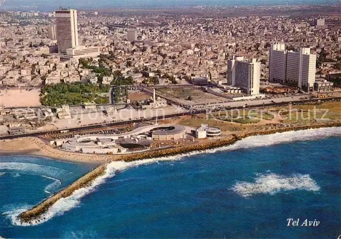73857265 Tel-Aviv_Israel Vue à vol d aoiseau en face la Dolphinarium postalisch gelaufen nach 1965 Fliegeraufnahme Erhaltung siehe scans [FriedD77] Fliegeraufnahme[Frierer ]
