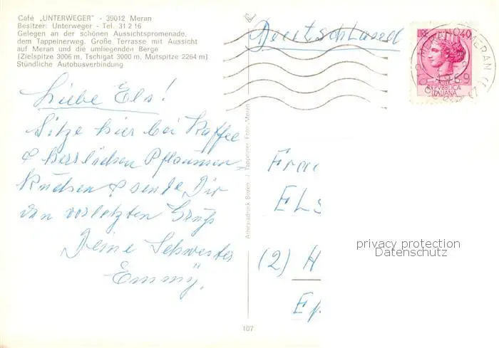 73858070 Meran_Merano_IT Cafe Unterweger Gastraum Terrasse postalisch gelaufen 1969 Erhaltung siehe scans [WerneD78] [WernPID7 ]