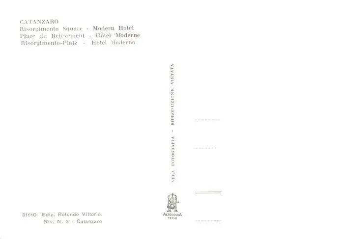 73871406 Catanzaro_Calabria_IT Piazza Risorgimento Albergo Moderno postalisch nicht gelaufen nach 1965 Erhaltung siehe scans [WerneD78] [WernPID7 ]