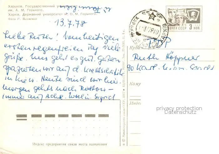 73877721 Charkow_Charkiv_Charkiw Universitet O.M.Horkoho Charkow_Charkiv_Charkiw postalisch gelaufen 1978 Erhaltung siehe scans [IrynaD87] [Iryn PID ]