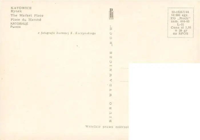 73882667 Katowice_PL Rynek postalisch nicht gelaufen nach 1965 Erhaltung siehe scans [WerneD78] [WernPID7 ]